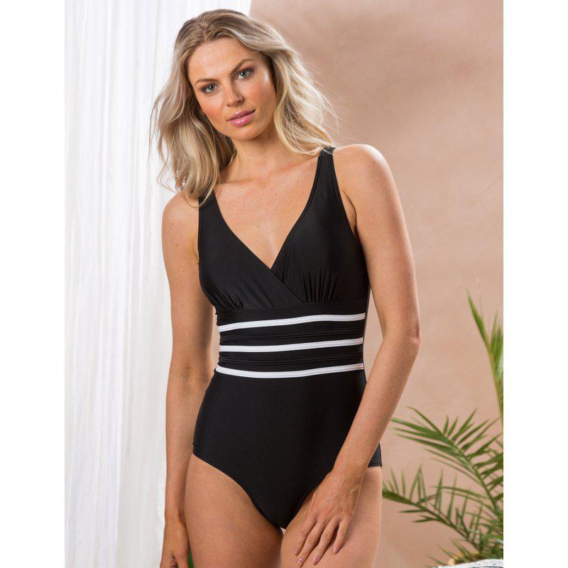 Kloorinkestävä uimapuku eksoottisella kukkakuosilla. Naisellinen ja imarteleva leikkaus, jossa rintojen kohdalla kaunis kietaisuyksityiskohta. Koristeelliset nauhat rintojen alla tuovat lisätukea ja korostavat muotoja. Vuorattu etupuolelta. Irrotettavat kupit, mahdollista käyttää myös proteesien kanssa. Säädettävät olkaimet. Matalahko lahkeensuu.