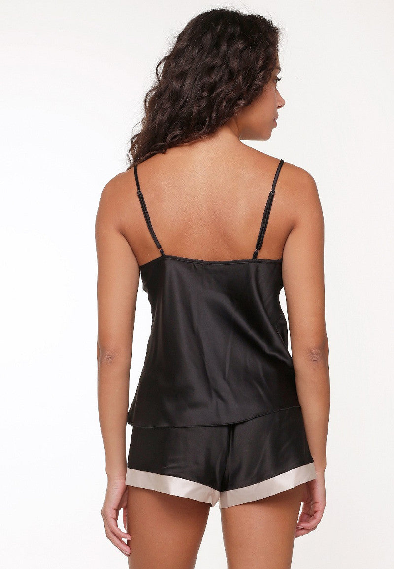 Satiininen Toppi ja Shortsit yöasu Lingadore Exclusives Musta-Shampanja