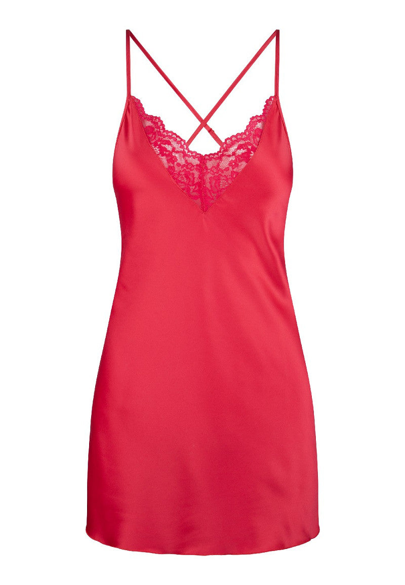 Ylellinen satiininen yöasu punaisena. Kuin tehty erityisiin hetkiin tai vaikka lahjaksi.