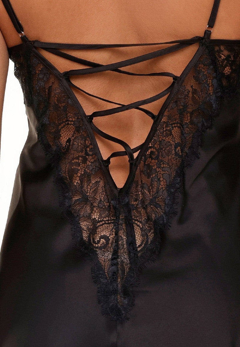 Upea nyöritettyselkämus ja klassinen pitsireunushelmassa, täydellinen yöasu herkkiin hetkiin.