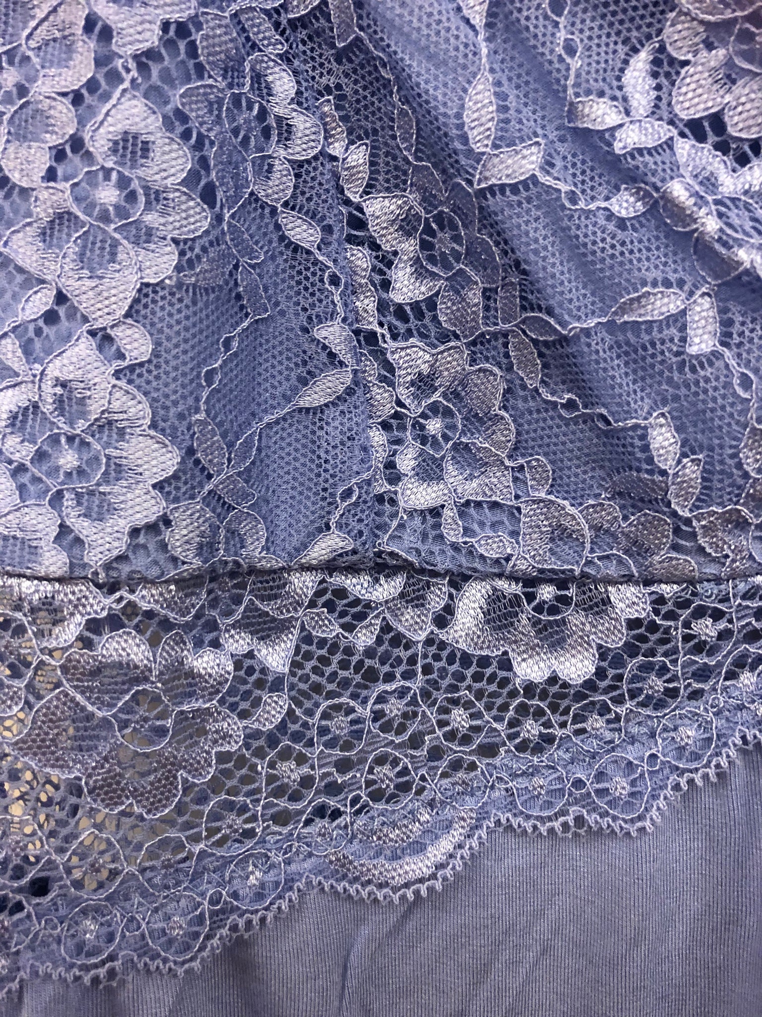 Aivan ihanasti laskeutuva modaali-pitsiyöasu. Pehmeä ja ihoa hyväilevä kangas ja pehmeä joustava pisti. Viimeiset kappaleet!