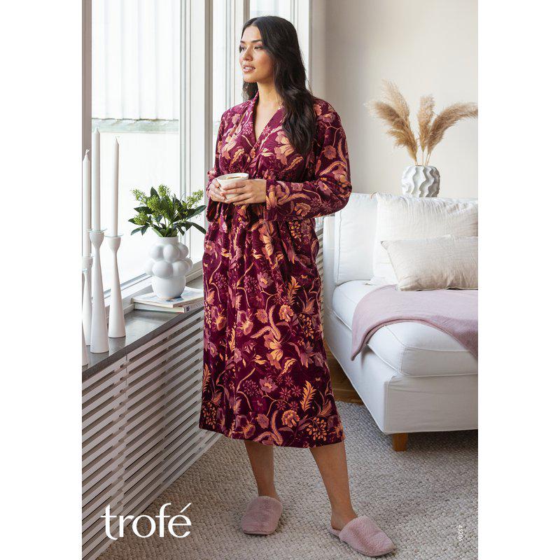 Trofe Samettinen fleece-Aamutakki Viininpunainen